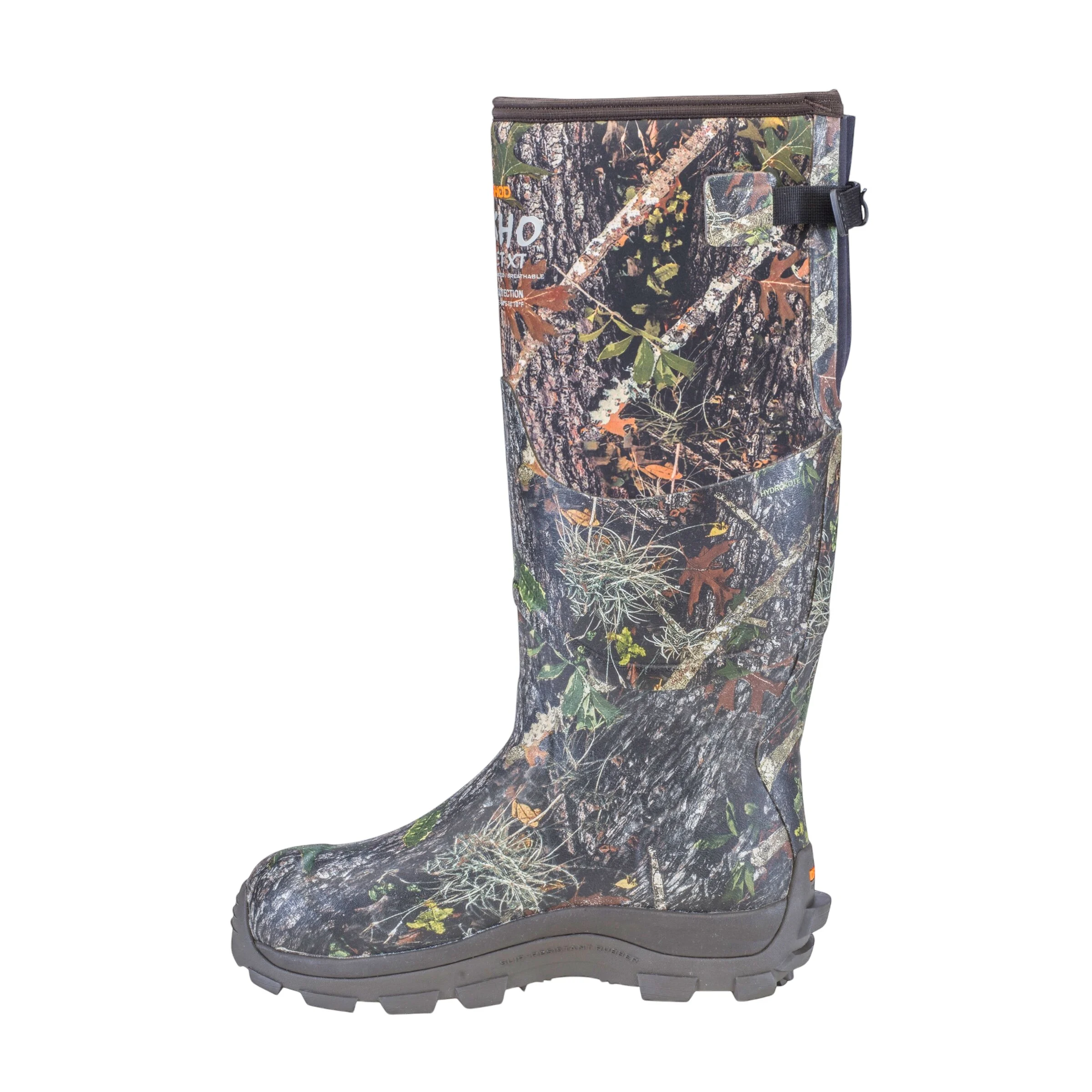 The DryShod NOSHO Gusset XT is an extreme-weather boot designed to keep feet warm and dry. It features a 5.5mm DENSOPRENE® foam bootie and a gusseted calf with a locking strap to fit various leg sizes or bulky clothing. The aggressive XT outsole provides superior traction in mud and snow, while the 7-layer insulation system ensures warmth during the coldest late-season hunts. These boots are built with high-density foam and breathable linings to ensure that moisture is wicked away from the skin while heat is retained. They are 100% waterproof and feature reinforced protection in high-wear areas, making them ideal for trekking through snow or standing in frozen swamps.