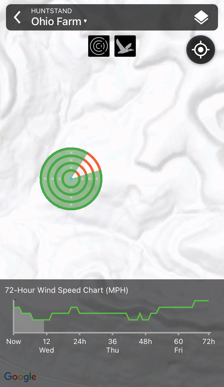 Most apps tell or show the wind direction. This is very beneficial for those hunting whitetails. After all, their primary defense mechanism is their nose.