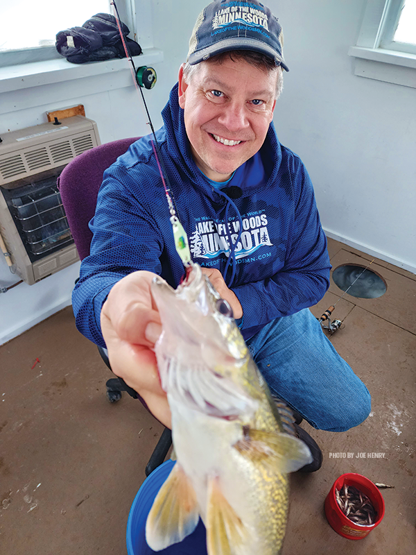 He said he would be ripping a trap in one hole and deadsticking (a live minnow six inches to a foot off of the bottom) his second hole. There were times, he said, when walleyes would hit that trap so hard that it would almost rip the rod right out of his hand.